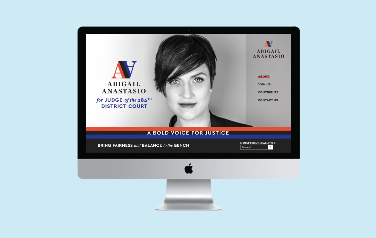When Abigail Anastasio decided to run for Judge of the 184th Criminal District Court in Houston, Texas, she enlisted DesignGood to create the look, feel, and voice of her political campaign.