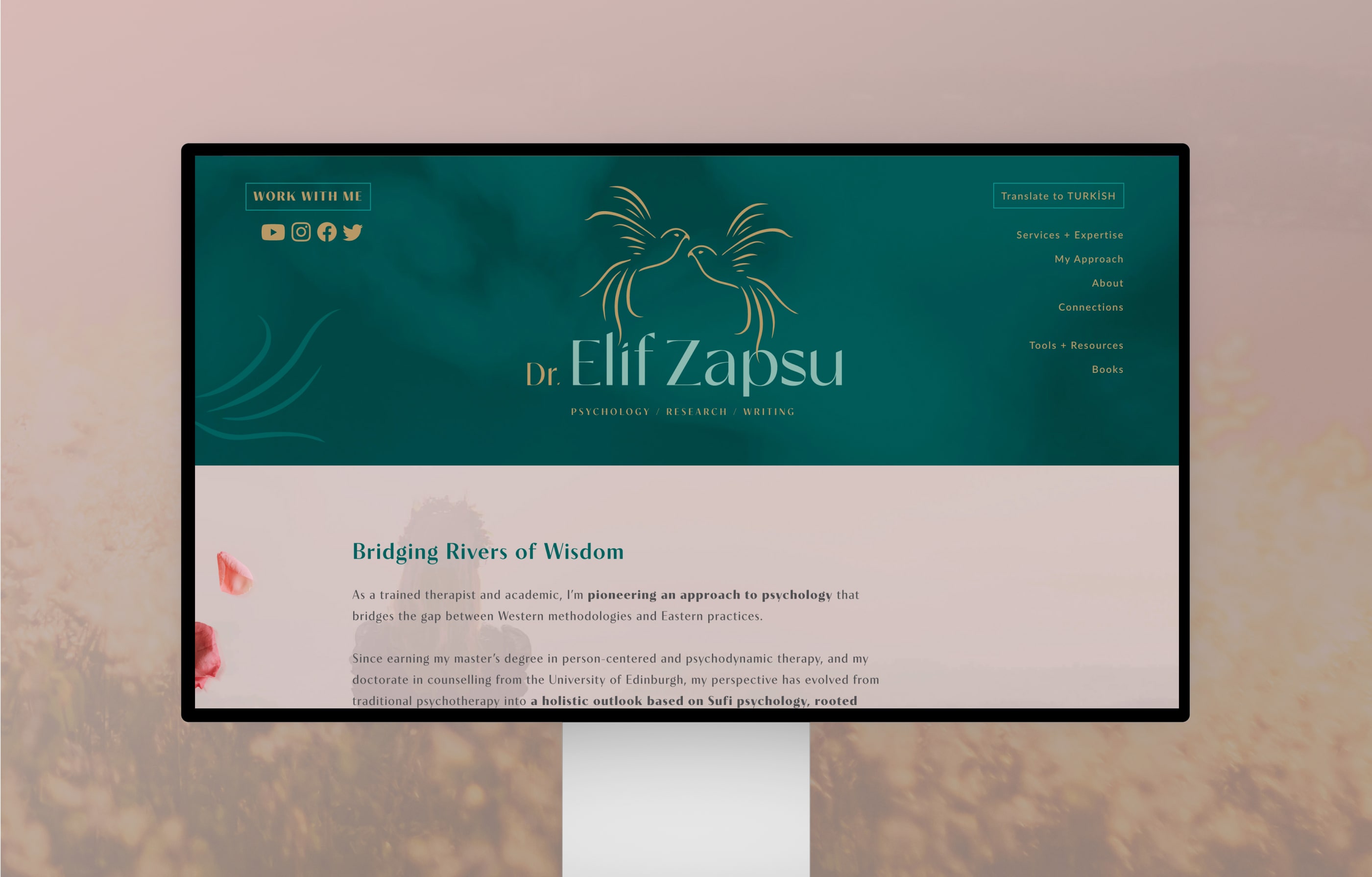 Elif takes psychotherapy beyond its traditional boundaries through short-term engagements. Her individualized consultations for adults begin with empathic listening alongside an examination of the effects of nutrition, exercise and lifestyle on well-being. To advance the healing process, Elif might incorporate experiential practices, including art, movement, music, poetry, ecotherapy, meditation and prayer into her sessions. Rather than guiding clients to revisit or “own” trauma, her process shifts the focus to holistic renewal to help clients rediscover their capacity for resilience, joy and love. In her academic writing, Elif focuses on creative and relational qualitative inquiry on diverse subjects, including the self-concept, spirituality and love. Her lifelong passion is exploring what it means to be human, through diverse lenses. As a consultant and speaker, Elif delivers tailor-made educational trainings, seminars and lectures on the topics of mental health and self-actualization to groups, schools, businesses and organizations. Throughout her work, Elif aims to bridge rivers of wisdom in well-being to provide her audiences with greater health and inner peace.