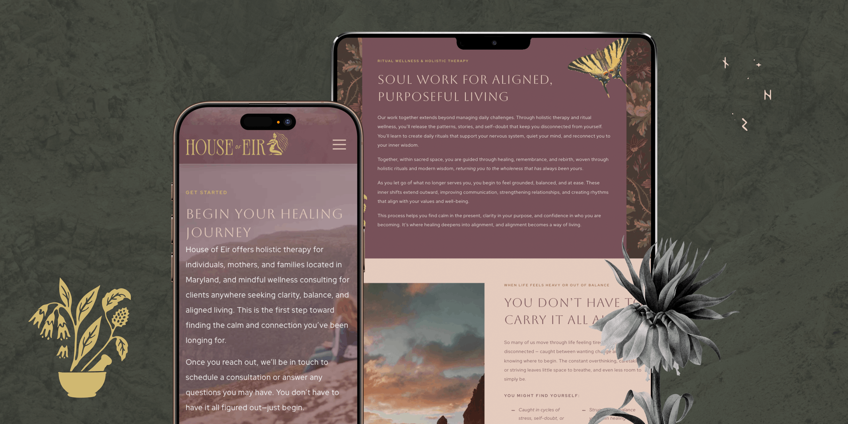 Through a collaborative brand and website process, DesignGood helped clarify House of Eir’s positioning and translate Sydney’s vision into a cohesive brand experience. We developed clear, resonant messaging and a visual identity that supports trust, connection, and growth while honoring her philosophy of healing through ritual for the mind, body, and soul. The result is a brand and website that feel aligned, welcoming, and reflective of the sanctuary she creates for her clients.
