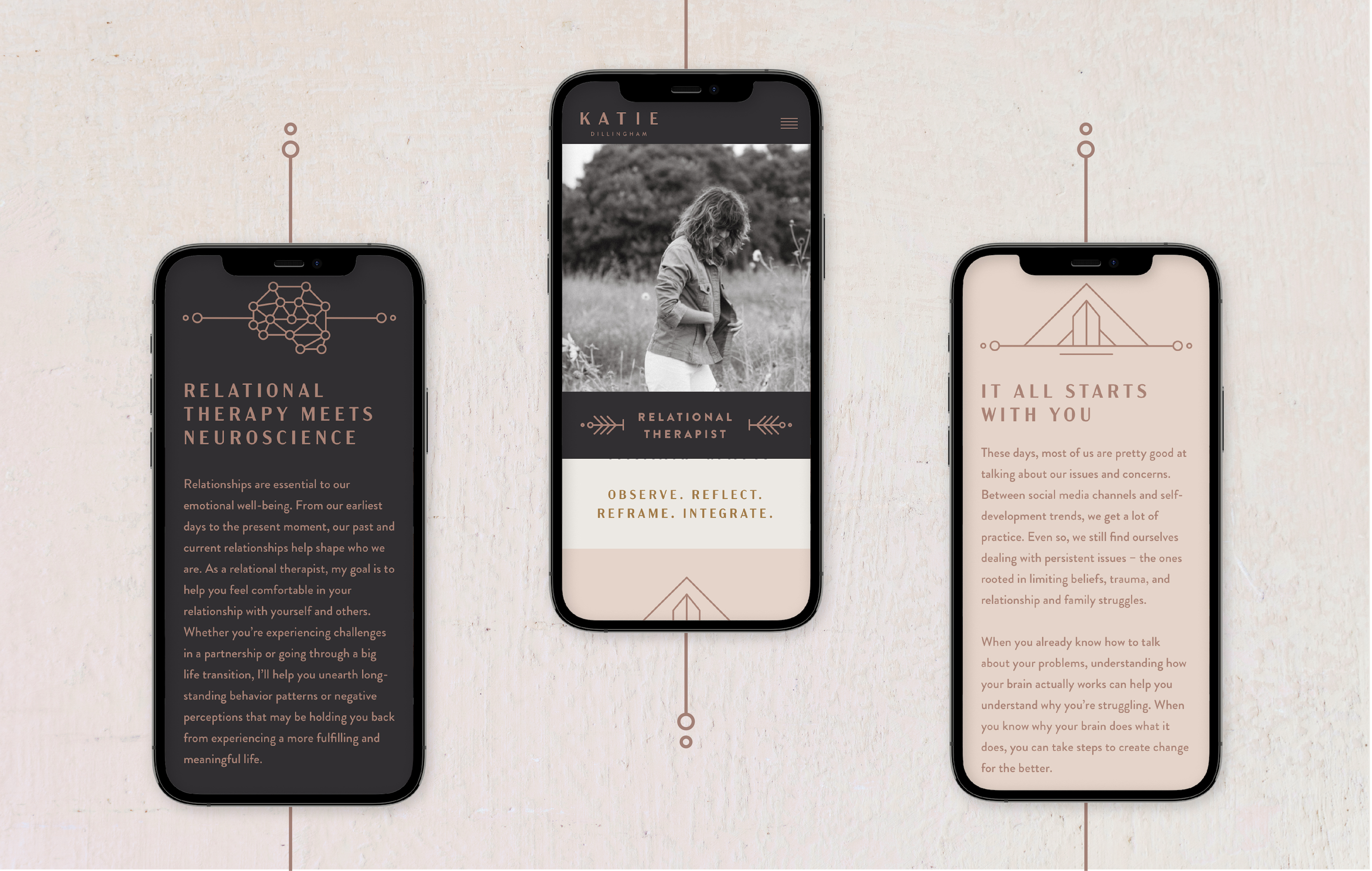 When Katie contacted DesignGood, she already had an established private practice and a solid client roster. But she had reached a point in her business where she wanted to introduce her clients to new ways of working, like therapy intensives and walk-and-talk sessions. Katie also spent a lot of time explaining her approach and gathering resources for her clients, who tend to be as interested in brain function as she is. She asked for our help creating a brand that would reflect her personality and energy, and a website where she could efficiently share tools and resources with her clientele.